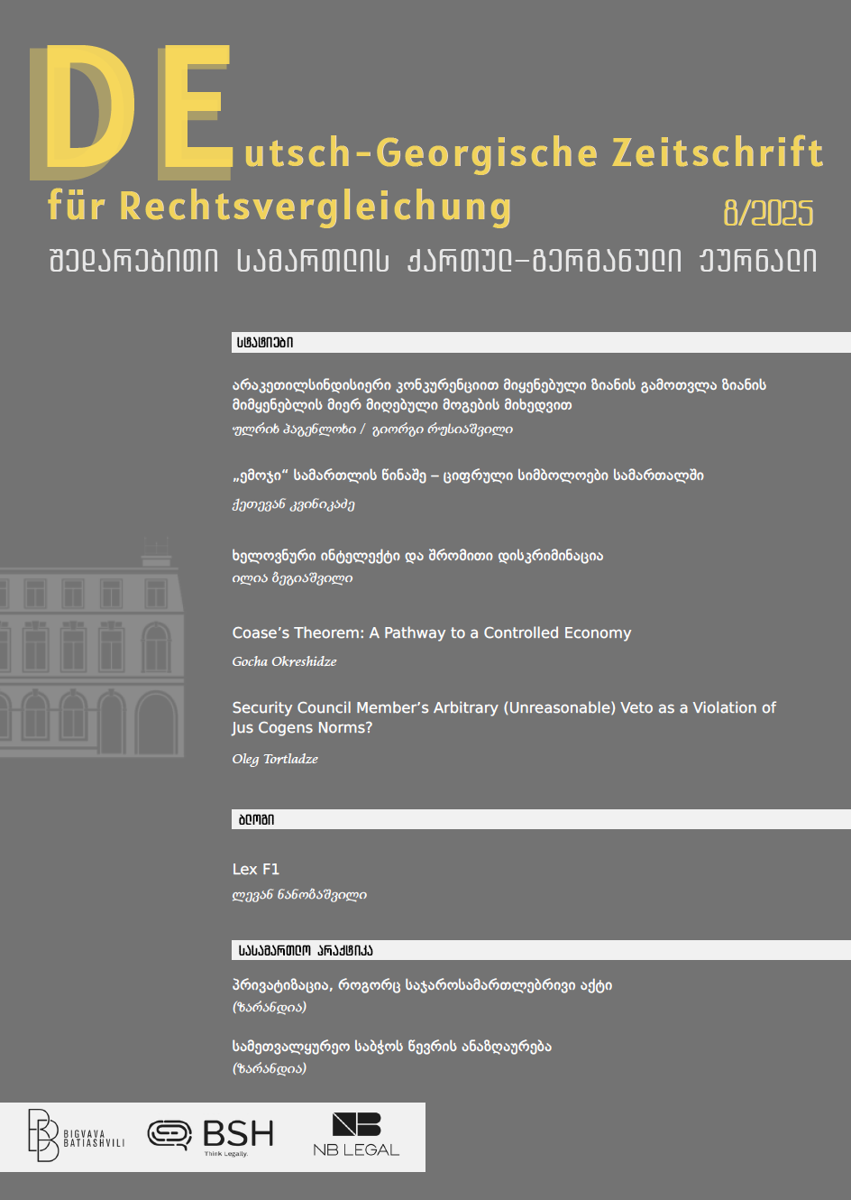„შედარებითი სამართლის ქართულ-გერმანული ჟურნალი“ – ეს არის ქართველი და გერმანელი იურისტების მიერ მომზადებული პერიოდული გამოცემა, რომლის მიზანიცაა ქართული სამართლის აქტუალური პრობლემების მიმოხილვა შედარებით-სამართლებრივ ჭრილში.